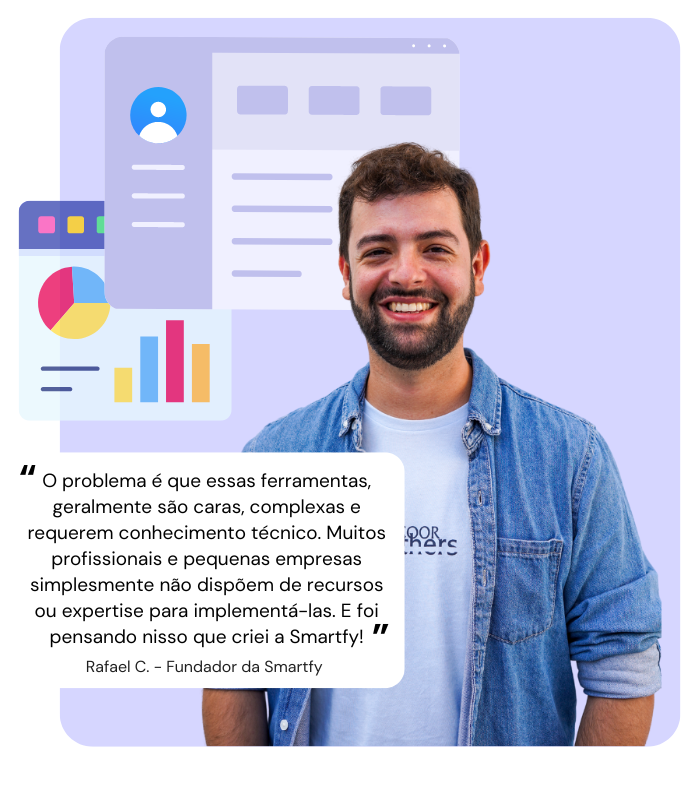 O problema é que essas ferramentas, geralmente são caras, complexas e requerem conhecimento técnico. Muitos profissionais e pequenas empresas simplesmente não dispõem de recursos ou expertise para implementá-las. E foi pensando nisso que criei a Smartfy!